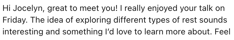 Watch past keynotes: Jocelyn’s ASAP philosophy was born on the Creative Mornings Stockholm stage — where a single talk generated her first community of rest practitioners. Watch the recording from Creative Mornings Stockholm embedded below.